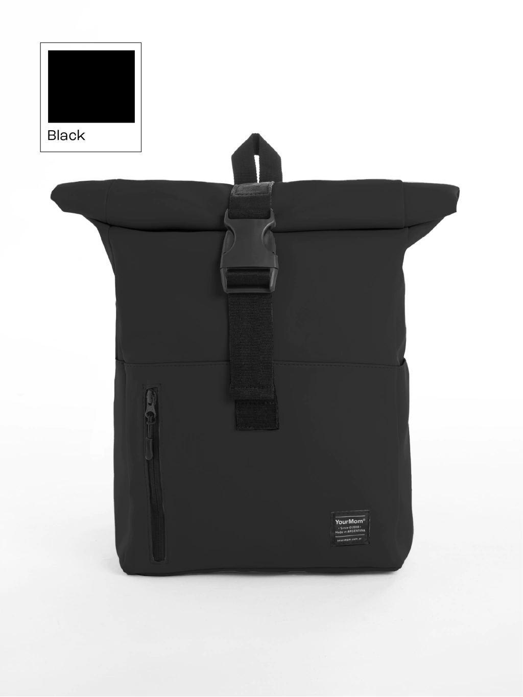 Hecha en Rubberlike, un material resistente al agua, cuenta con dos bolsillos laterales, un bolsillo frontal con cierre, espalda acolchonada en cordura, costuras reforzadas y un bolsillo de seguridad. Incluye una pieza especial para colocar la mochila sobre una valija, correas regulables y acceso con broche mochilero negro. Su interior es de tela lavable y tiene un bolsillo acolchonado para computadora de hasta 15” más un bolsillo con cierre.