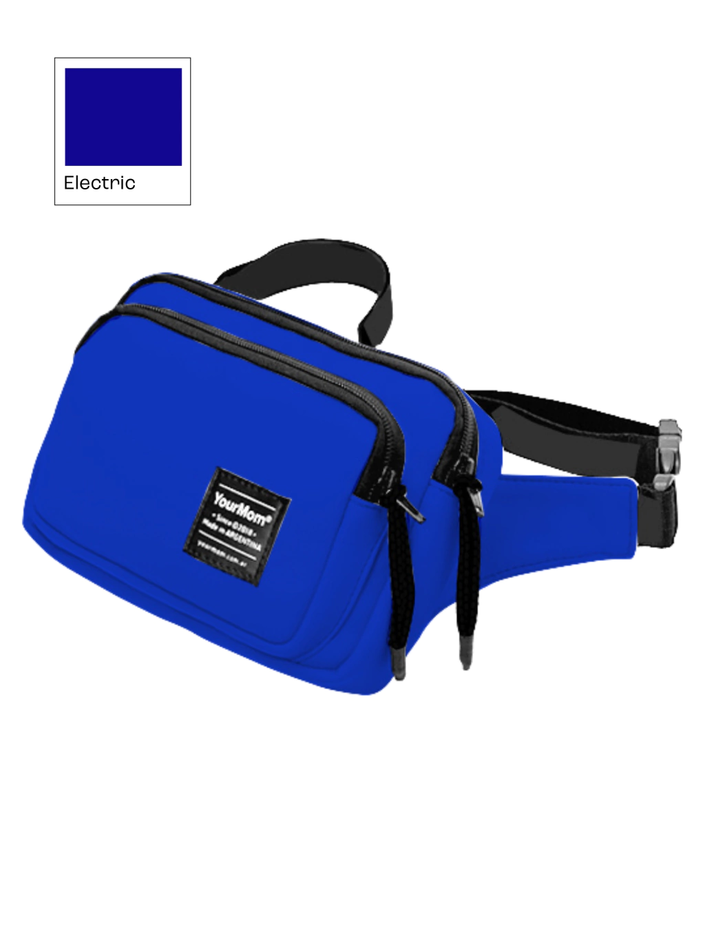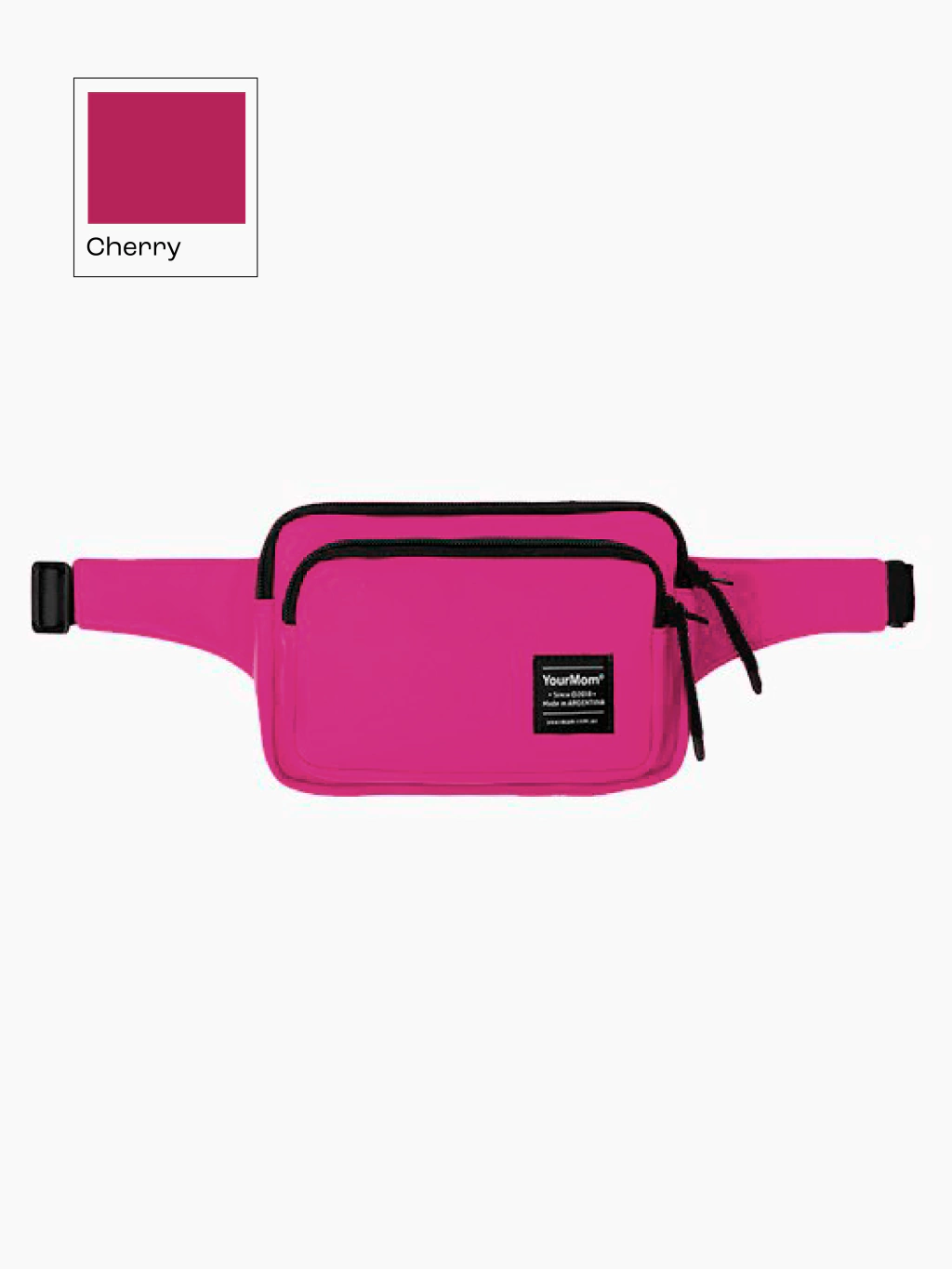 Riñonera tamaño mediano. Hecha de Rubberlike, material resistente a la lluvia, con correas negras reforzadas y regulables para uso cruzado o a la cintura. Es fácil de limpiar, cómoda, colorida y funcional. Acceso mediante broche mochilero reforzado y tamaño ideal para celular, billetera, anteojos y documentos.